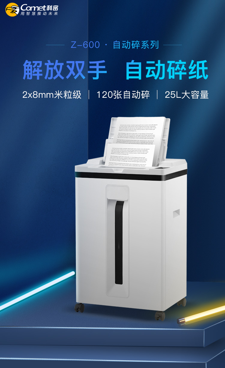 科密 comet 5級保密辦公全自動碎紙機(全自動120張 手動8張 持續30分鐘 25L 可碎卡、訂書針)Z-600
