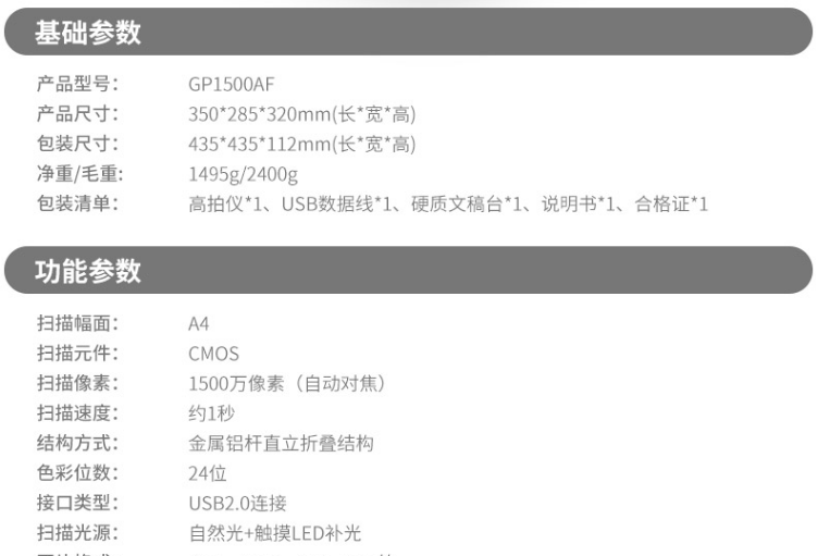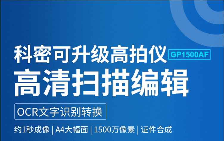 科密 可在線升級高拍儀 1500萬高清像素掃描儀 OCR文字識別 GP1500AF