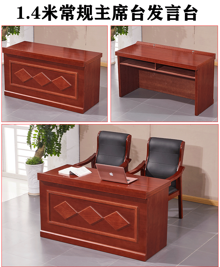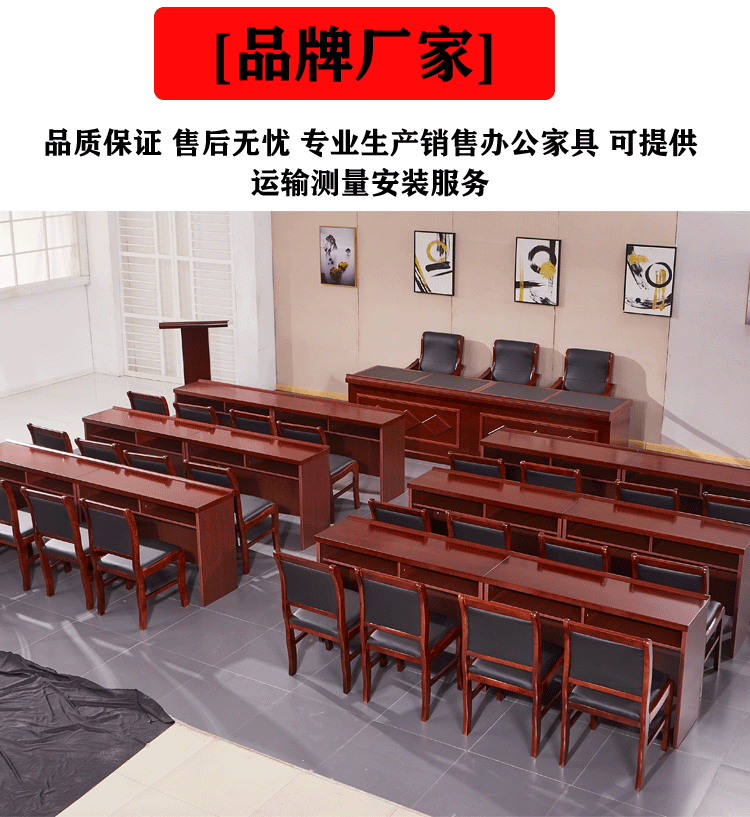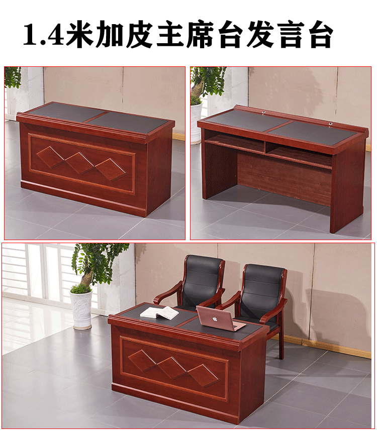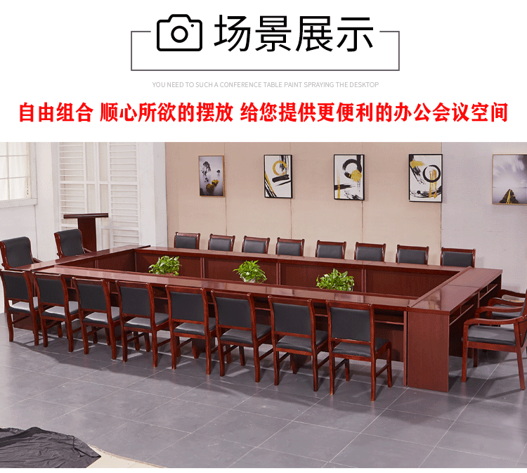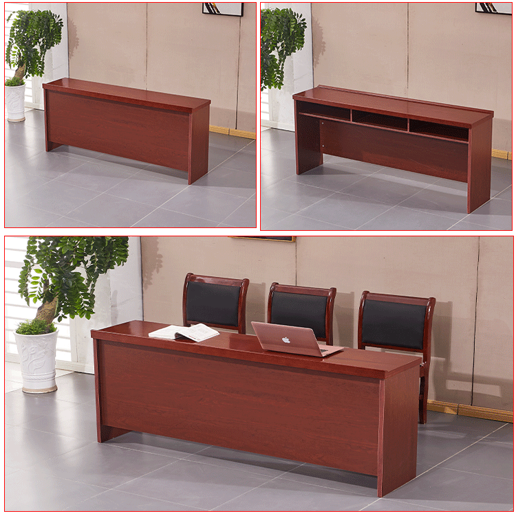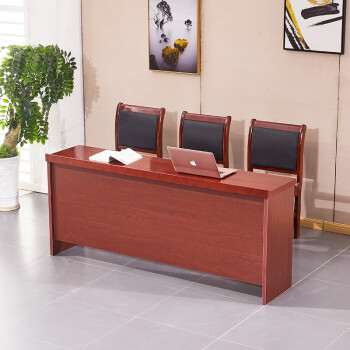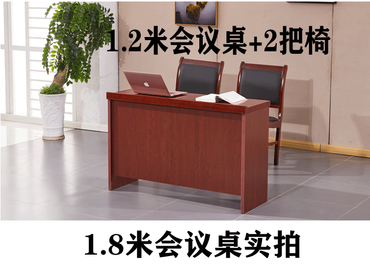 麥葉會議桌條桌會議室培訓桌實木長條木皮油漆條形雙人課桌椅主席臺桌 1.8米條桌+3把靠背椅