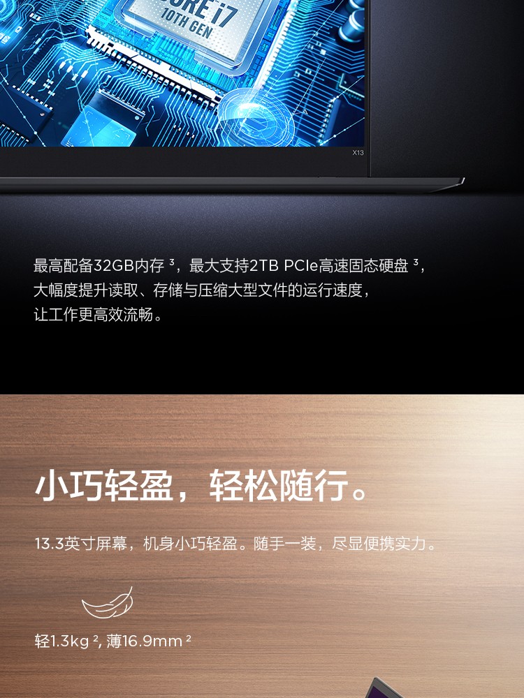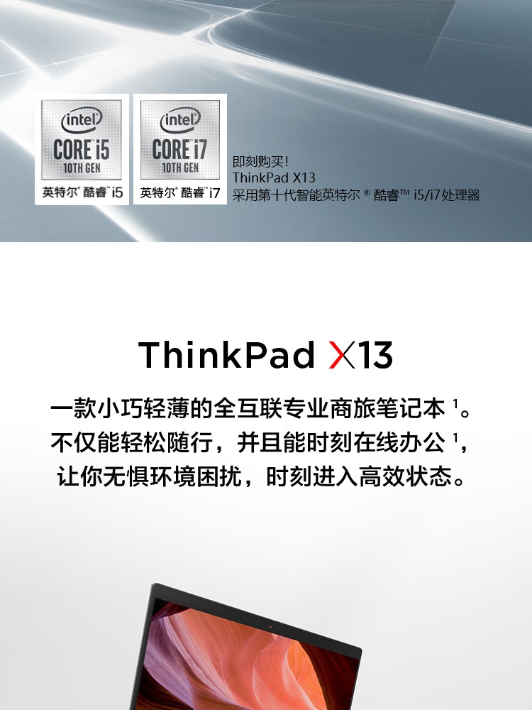 聯想ThinkPad X13 酷睿版 十代英特爾酷睿i5/i7 13.3英寸商務辦公輕薄筆記本電腦 十代i5 8G 512G 5SCD 4G版