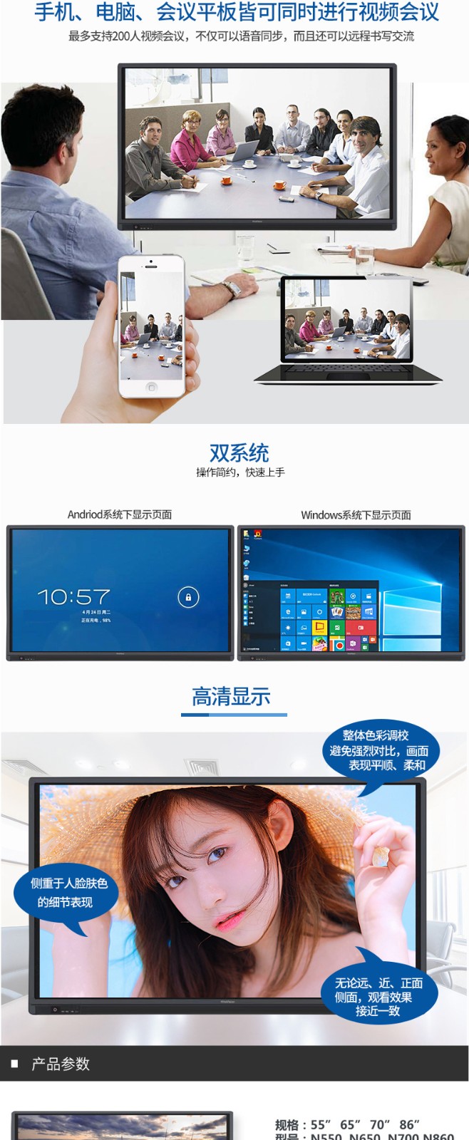 鴻合newline教學一體機80英寸辦公多功能會議平板電腦智能觸摸屏一體機 【安卓+Win10雙系統】