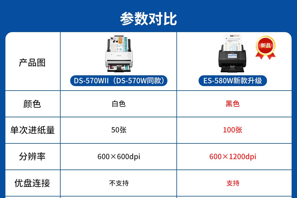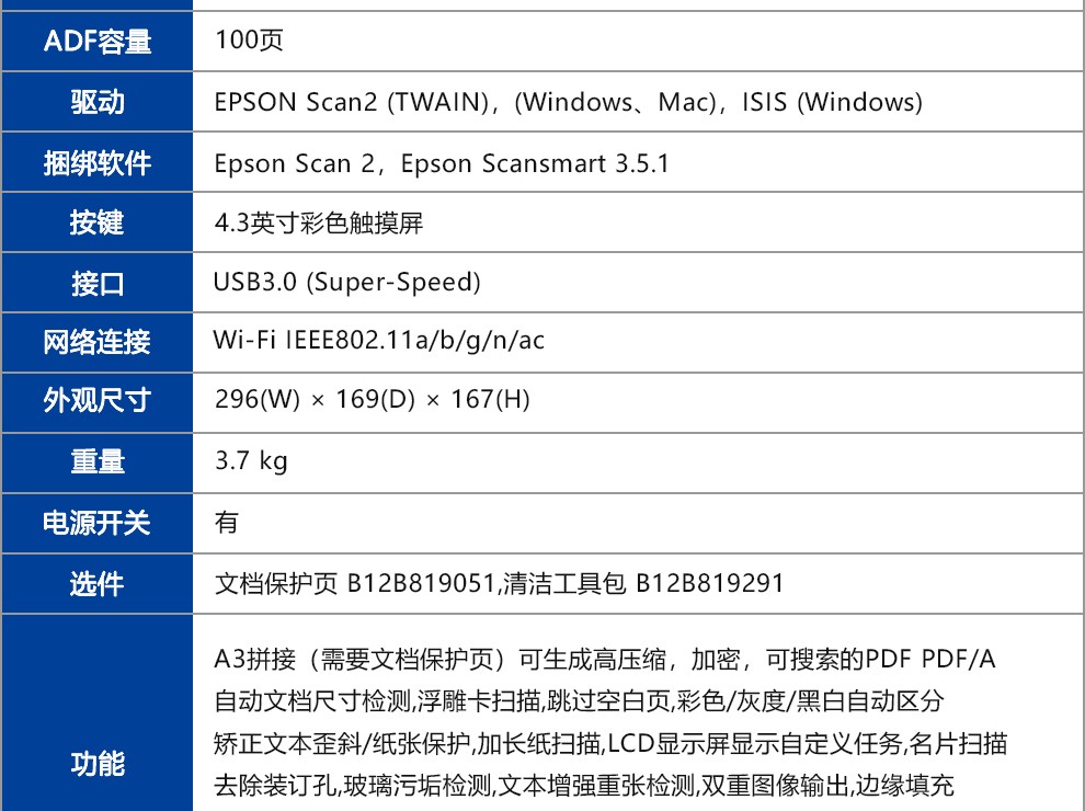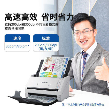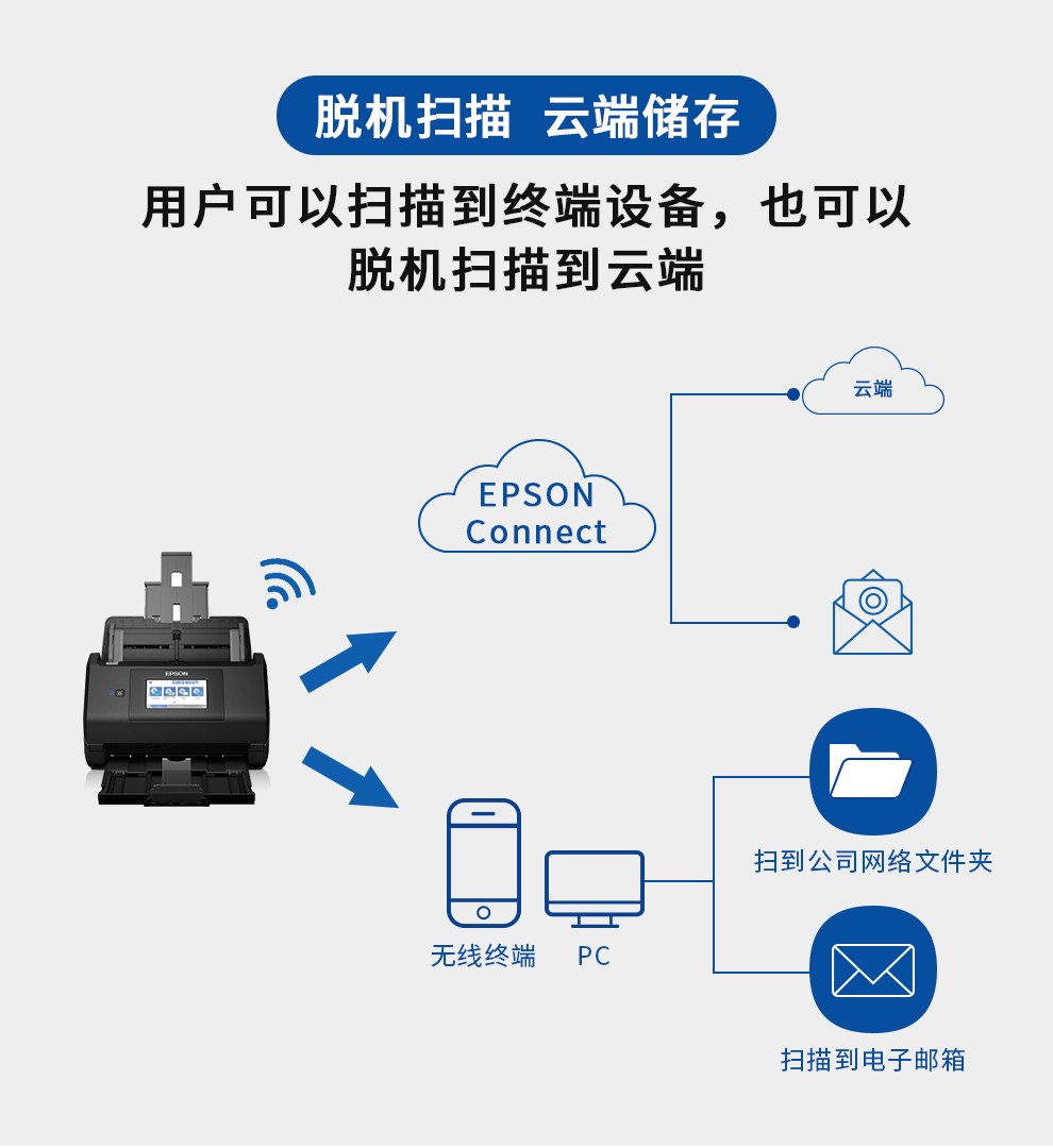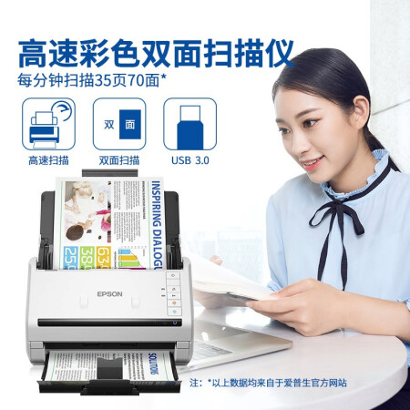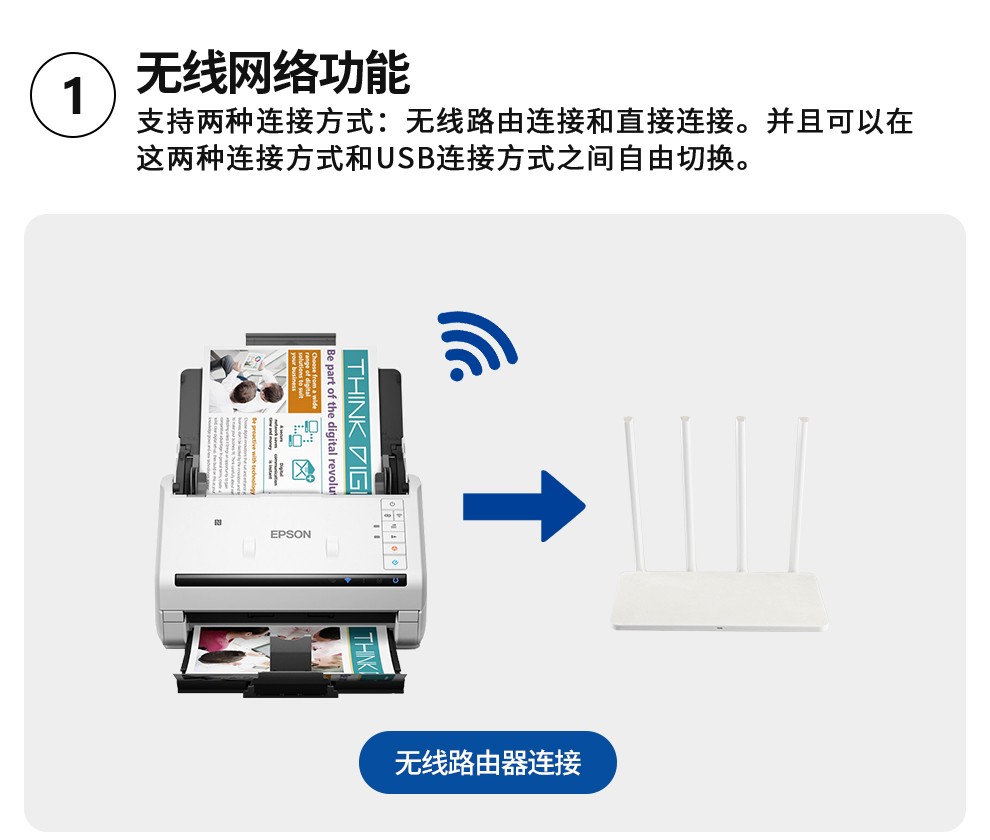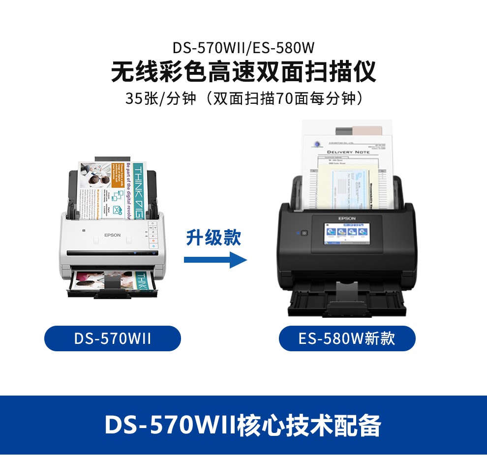 愛普生(EPSON)高速饋紙式自動進紙連續雙面彩色無線文檔掃描儀 DS-570WII(DS-570W同款)