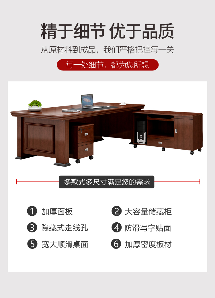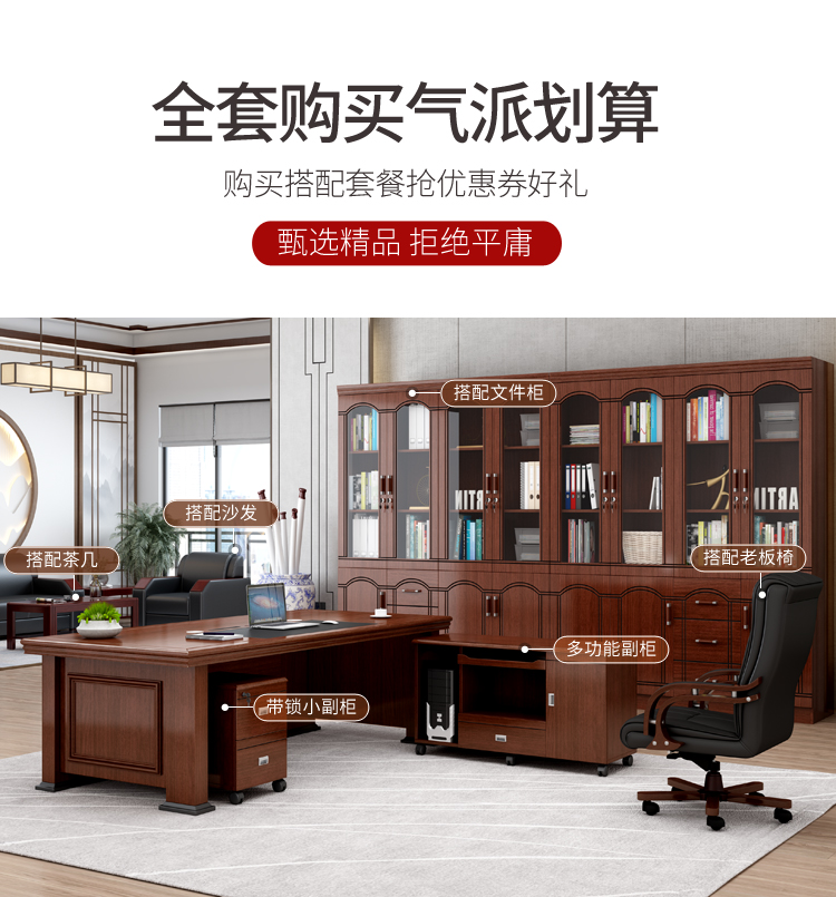 科森格 辦公家具老板桌辦公桌總裁桌簡約現代老板臺新中式大班臺單人主管經理桌1.8米辦公室書桌桌椅組合 1.6米單桌#236