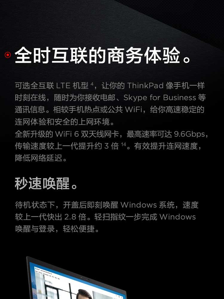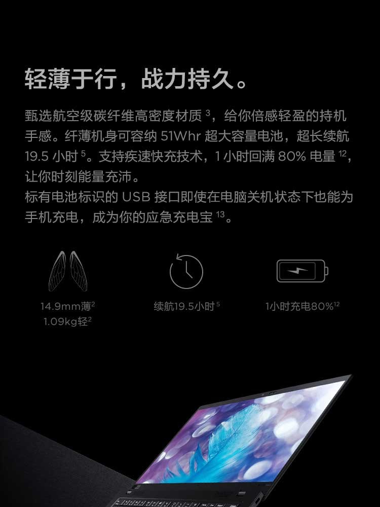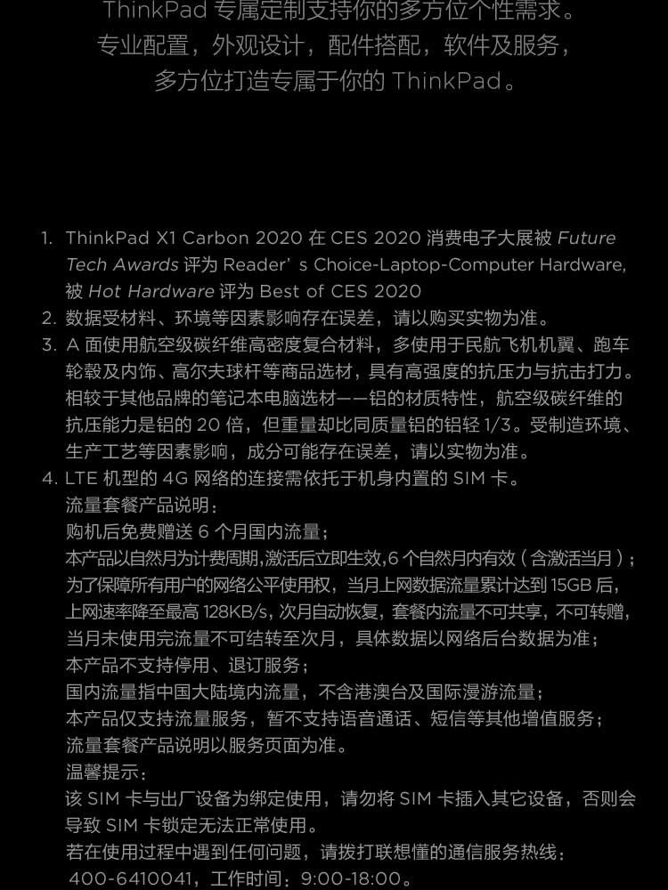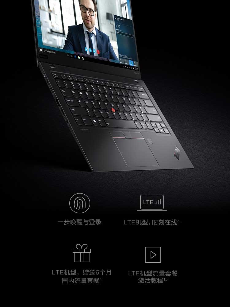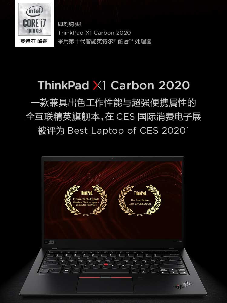 聯想ThinkPad X1 Carbon 2020英特爾酷睿i5 14英寸輕薄筆記本電腦 i5-10210U 8GB 512G(36CD) FHD 背光鍵盤 Win10 office