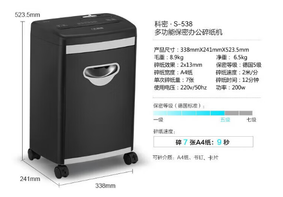 科密/Comet S580 碎紙機 5級保密辦公高速米粒級碎紙 送貨上門安裝 質保一年