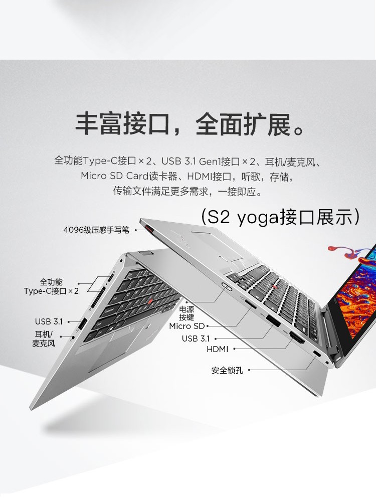 聯想ThinkPad S系列(2020新品)商務輕薄ibm筆記本手提電腦十代酷睿 i5 8G 512G增強型固態丨S2-01CD黑 FHD屏 Office2019)升配