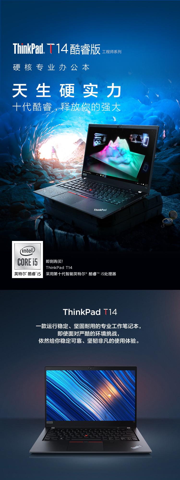 聯想ThinkPad T14 酷睿版 英特爾酷睿i5 2020款 4FCD 14英寸輕薄筆記本電腦 i5-10210U 8G 512GSSD 2G獨顯