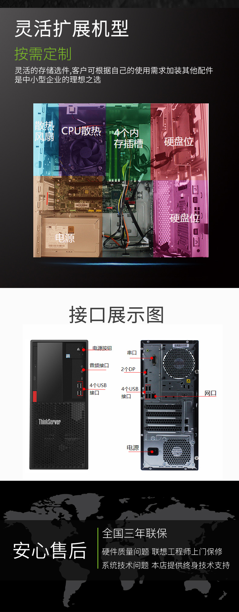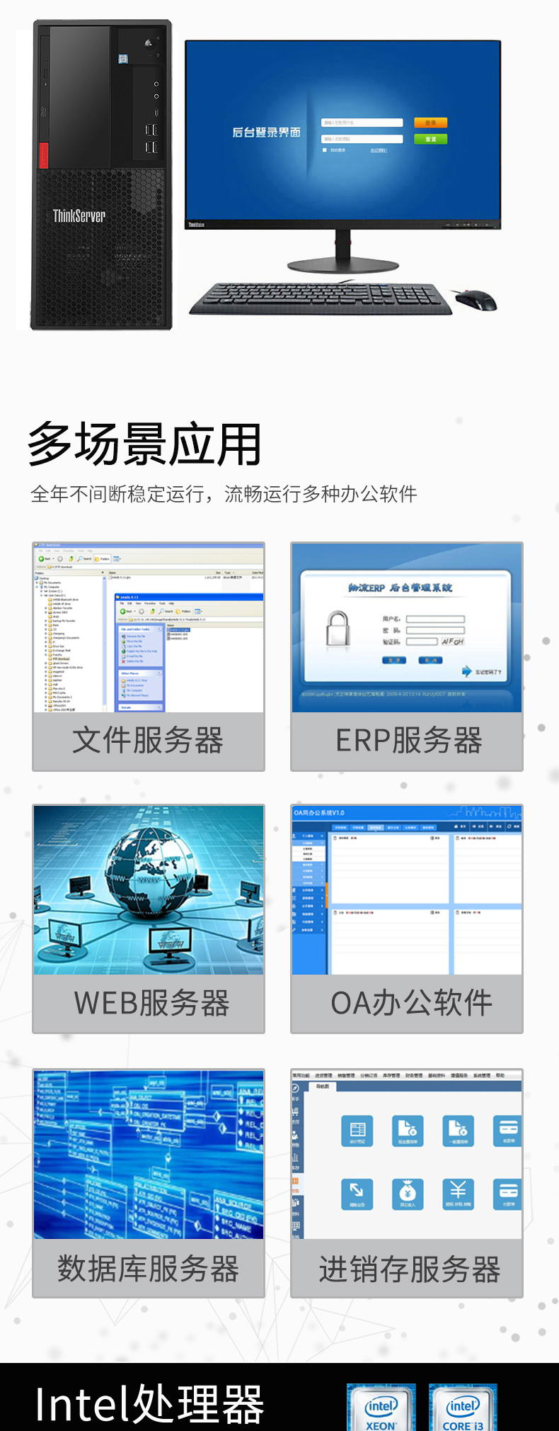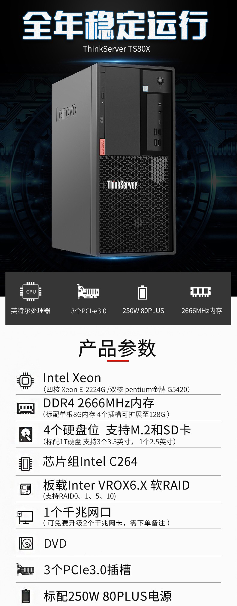 聯想ThinkServer TS80x 塔式服務器主機 至強E-2224G+23.8英寸顯示器 【ERP推薦】16G 240G固態+2×1T