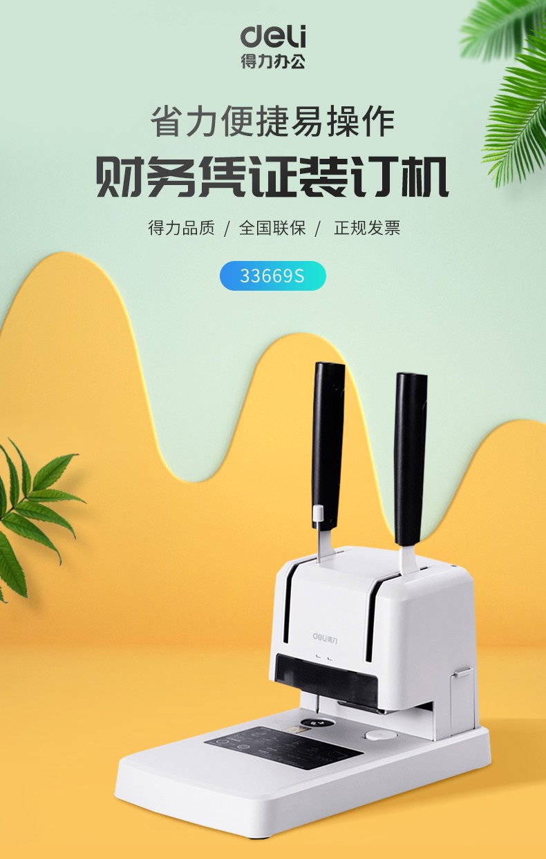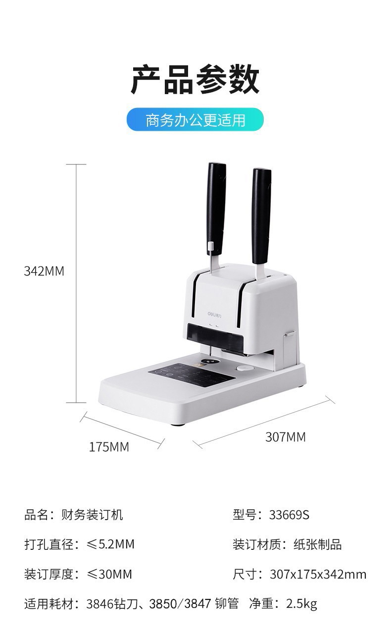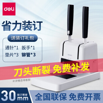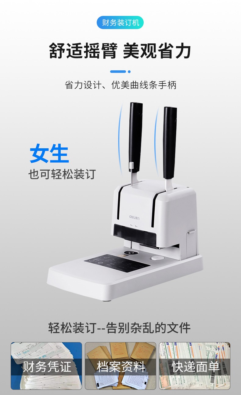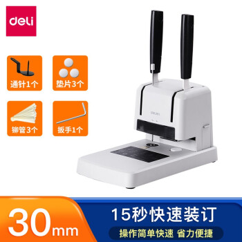 得力(deli) 裝訂機財務 憑證裝訂機自動電動熱熔鉚管打孔機 33669S/可裝訂30mm