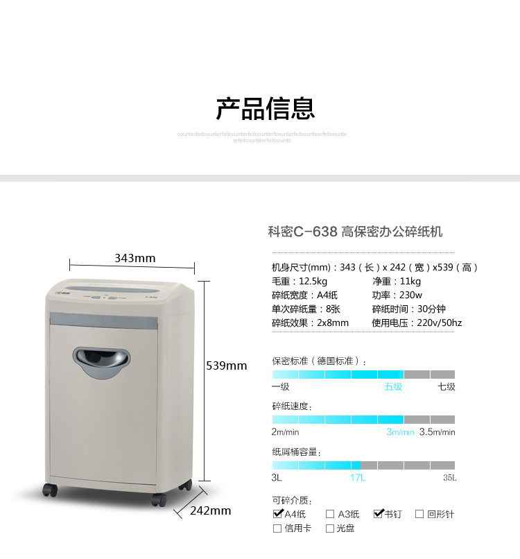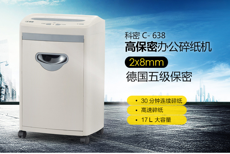 科密(comet)C-638b碎紙機,5級保密辦公商用碎紙機(單次8張 持續30分鐘 17L 可碎卡 )
