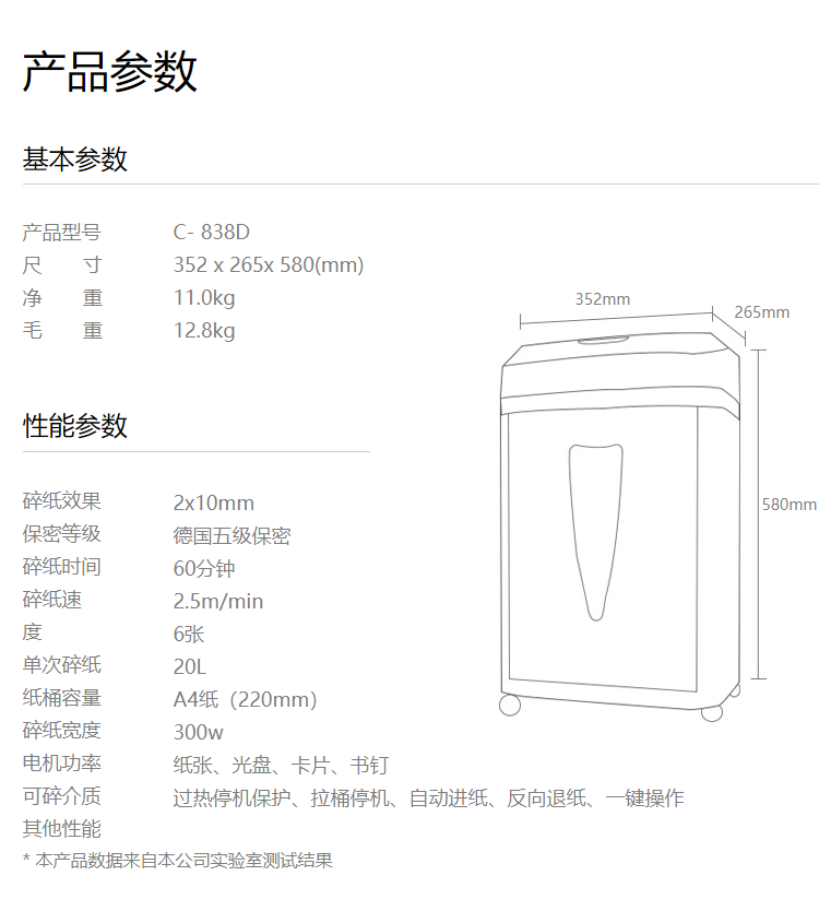 科密comet C-838D碎紙機 5級保密小顆粒2*10mm60分鐘碎紙光盤卡6張科密C838D