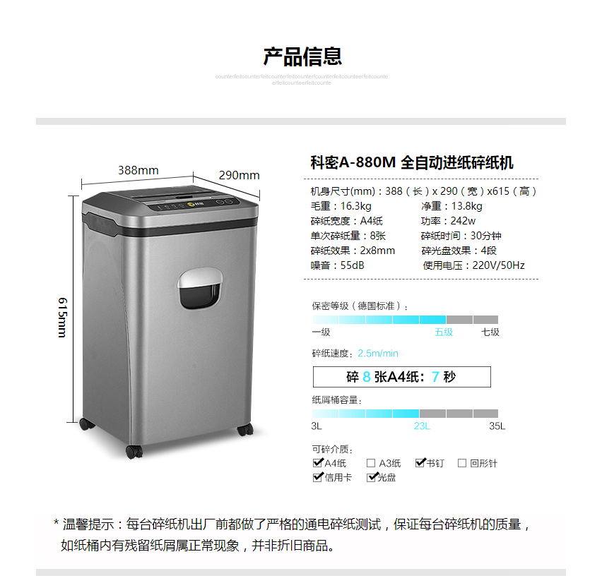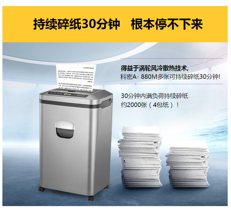 科密 碎紙機 A-880M 自動進紙碎紙機 大型辦公高保密長時間碎光盤粉碎機